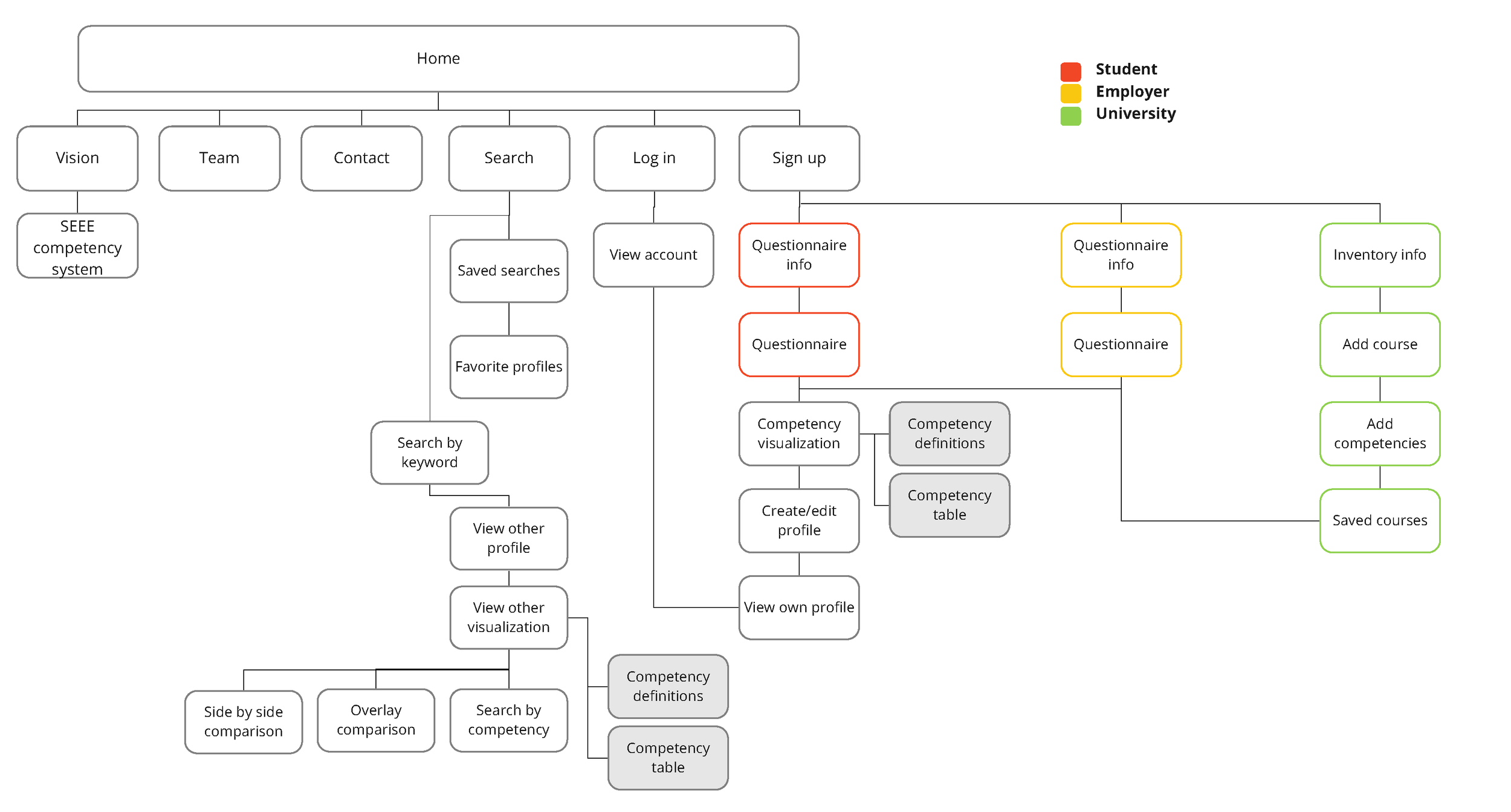 From here, I built two site maps based on stakeholder requirements. Testing was done via surveys that were conducted through Google Forms for our team of eighteen interdisciplinary students.